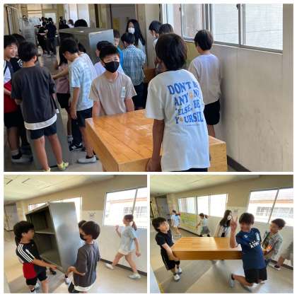 7月20日(木) ボランティア6年生 公開日 2023/07/20 更新日 2023/07/20 6年 6年生のお兄さんお姉さんの活躍により、あっという間に1年生と2年生の教室の荷物がなくなってしまいました。さすが6年生ですね。とてもたよりになります。感謝感謝ですね。