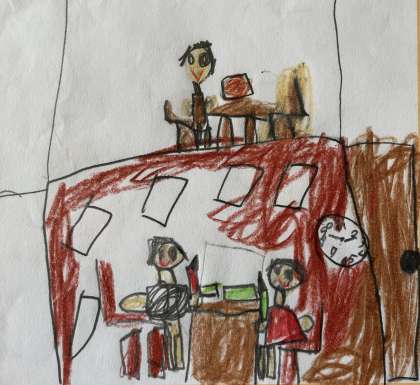 ノブッダくん作文より1年生の作品を紹介します。イラストの題は「勉強しているところ」です。