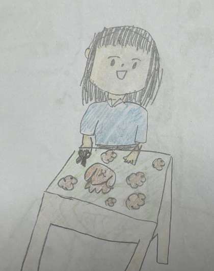 ノブッダくん作文から6年生の作品を紹介します。イラストの題は「私がトリマーになったところ」です。