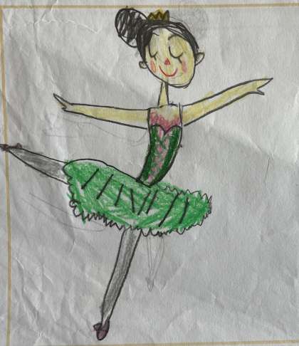 ノブッダくん作文から1年生の作品を紹介します。イラストの題は「バレリーナ」です。