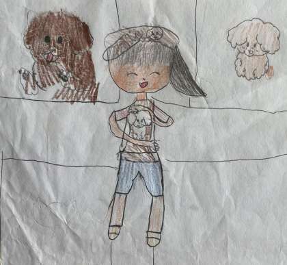 ノブッダくんイラストより3年生の作品を紹介します。イラストの題は「わたしのしょうらいのゆめ」です。ペットショップやさんになりたいです!