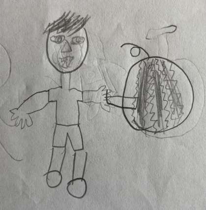 ノブッダくんイラスト募集より6年生の作品を紹介します。イラストの題は「スイカわり」と「ちょうちょ」です。