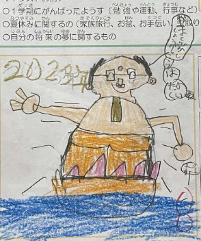 (写真のイラストは、ひまわり組のお友だちがいてくれたノブッダくんの作品です)