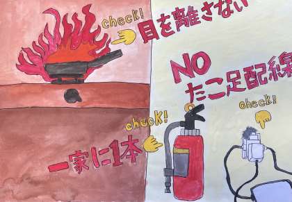 夏休みの作品募集の一部を紹介します。4年生の「防火ポスター」です。