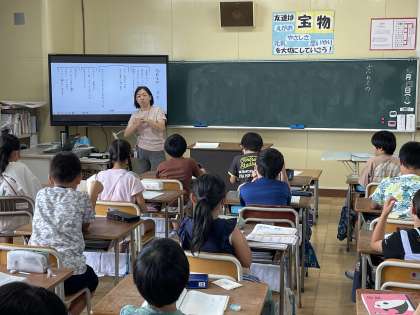 4年生の国語の授業のようすです。高田敏子さんの詩「忘れもの」について学習を進めていました。