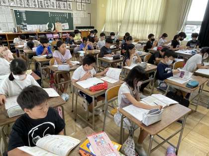 9月5日(火) 平行四辺形の問題【4年算数】 公開日 2023/09/05 更新日 2023/09/05 4年 4年生の算数の授業のようすです。平行四辺形の性質を使って、角度や長さを求める問題に挑戦していました。