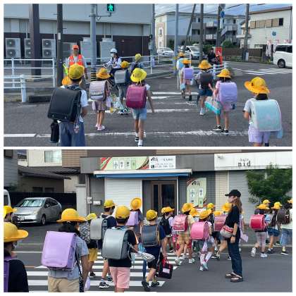 家を出るときは涼しげな心地よい風が吹いていましたが、太陽が昇るにつれて気温が上がり、大粒の汗が出る朝となりました。残暑の厳しい中、今日も早くから各交差点では、PTA旗ボランティアさんや地域見守り隊の方が子どもたちに声をかけていただきながら横断をサポートしてくださいました。ありがとうございました!