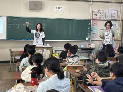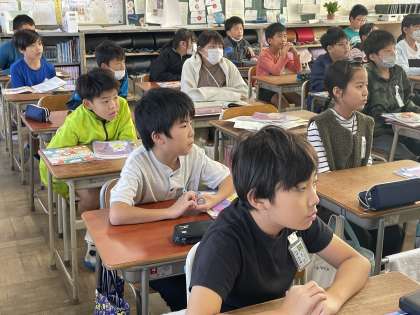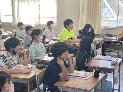 10月6日(金) 英語で道案内【5年生】 公開日 2023/10/06 更新日 2023/10/06 5年 5年生の外国語活動の授業のようすです。英語で道案内をするときに使う表現について学び、実際に友だちに伝える練習をしました。町で外国の人に尋ねられた時に、ぜひ挑戦してみましょう!