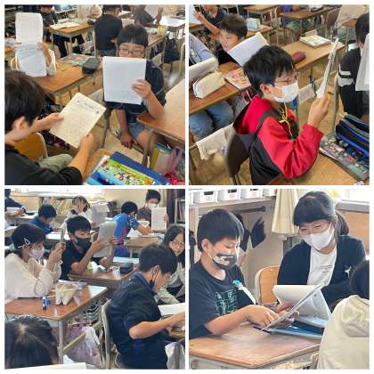 10月6日(金) 音声計算練習【5年生】 公開日 2023/10/06 更新日 2023/10/06 5年 5年生の算数の授業のようすです。ペアになって最小公倍数を求める音声計算練習に挑戦していました。たくさん問題を解いて自信を深めることができましたね。