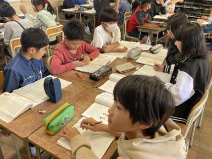10月6日(金) 意見をまとめて【6年生】 公開日 2023/10/06 更新日 2023/10/06 6年 6年生の国語の授業のようすです。残りの学校生活の中でクラスで楽しく過ごすためにはどうしたらいいか、班の中で司会者が中心となって意見をまとめていました。