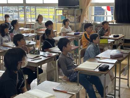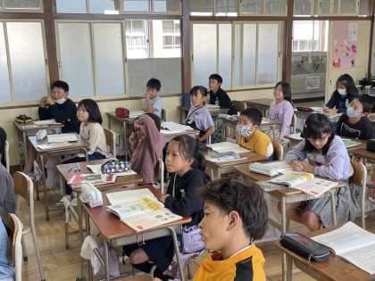 10月6日(金) 漢字の広場【4年生】 公開日 2023/10/06 更新日 2023/10/06 4年 4年生の国語の授業のようすです。「習った漢字を使って学校のようすを文字に書こう」というめあてで学習を進めていました。絵のようすを見ながら意味をよく考えて文にすることができましたね。
