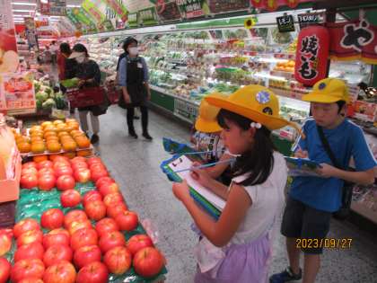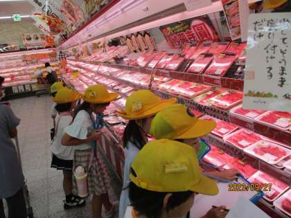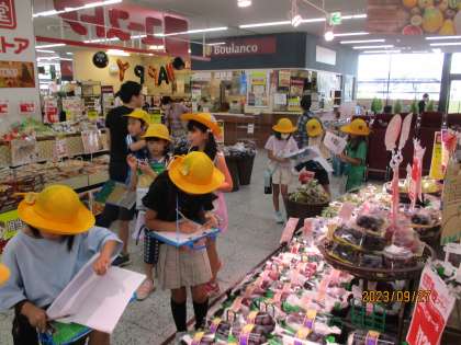 10月9日(月・祝) 3年スーパー見学のようす 公開日 2023/10/09 更新日 2023/10/09 3年 3年生は社会の学習の一環として、先々週に校区にあるピアゴに見学に出かけました。そのときのようすの一部を紹介します。 お店ではお客さんのためにどんな工夫をしているか目で確かめたり質問したりして勉強することができましたね。これからお買い物に出かけるときには、勉強したことを確認したり、他の工夫を発見したりできると学びが深まりますよ!