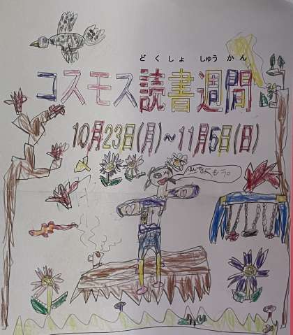 10月23日から11月5日までコスモス読書週間です。たくさんの本との出会いを楽しみましょう!廊下には読書週間におすすめの本を紹介したポスターが掲示されています。1年生のポスターの一部を紹介します。