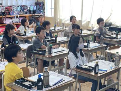 11月2日(木) 3年 カタカナを毛筆で 公開日 2023/11/02 更新日 2023/11/02 3年 3年生の書写の授業のようすです。筆でカタカナを書くのにどんなことを気をつけるとよいか、今までの経験をもとに意見を出し合いました。みんなの意見をもとに、上手に筆を運ぶことができたかな。