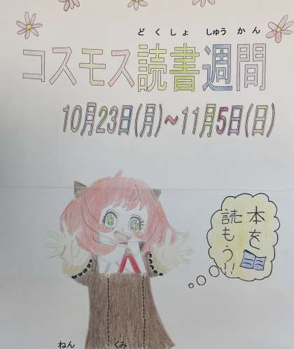 11月4日(土)5年 ウェブ展覧会【コスモス読書週間】 公開日 2023/11/04 更新日 2023/11/04 5年 本日5日(日)まで大和東小学校のコスモス読書週間です。たくさんの本との出会いを楽しみましょう!廊下には読書週間におすすめの本を紹介したポスターが掲示されています。5年生のポスターの一部を紹介します。