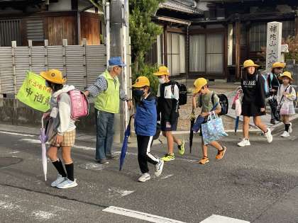 11月6日(月) 見守りありがとうございます! 公開日 2023/11/06 更新日 2023/11/06 PTA 3連休が明け、月曜日の朝を迎えました。雨が心配でしたが、なんとか降られずに登校を完了することができました。早くから校区の交差点では、PTA旗ボランティアさんや地域見守り隊のみなさんが子どもたちをむかえ、声をかけていただきながら安全な横断をサポートいただきましたして。ありがとうございました!