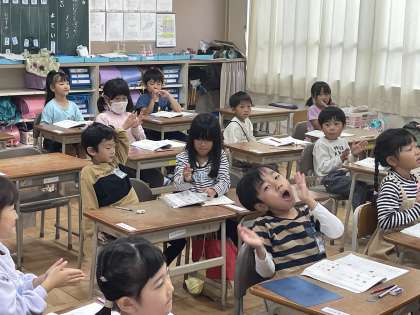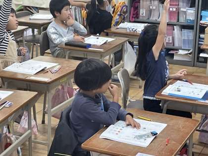 11月6日(月) 1-3 どんなかんじかな 公開日 2023/11/06 更新日 2023/11/06 1年 1年3組の国語の授業のようすです。「かん字をつかってなおしてみよう」というめあてで、絵で書かれた部分を漢字にすることに挑戦していました。クイズみたいで楽しく学ぶことができましたね。