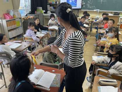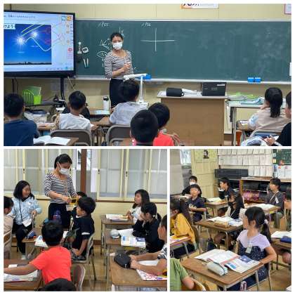 3年1組の理科の授業のようすです、「太陽のいちを、時こくと比べながら調べよう」というテーマで学習を進めていました。
