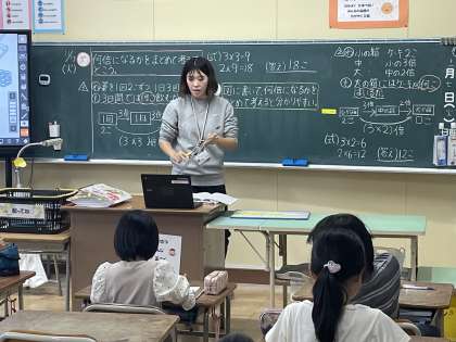 3年3組の算数の授業のようすです。「何倍になるかをまとめて考えてとこう」というめあてで学習を進めていました。図にかいて何倍になるかをもとめて考えるとわかりやすかったですね。