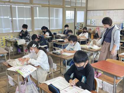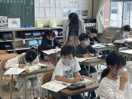 11月7日(火) 5-3 ミシンぬいのよさ 公開日 2023/11/07 更新日 2023/11/07 5年 5年3組の家庭科の授業のようすです。「ミシンぬいのよさを見つけよう」というめあてで、身の回りの布製品でミシンで縫われたものの縫い目や特徴について調べていきました。