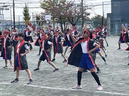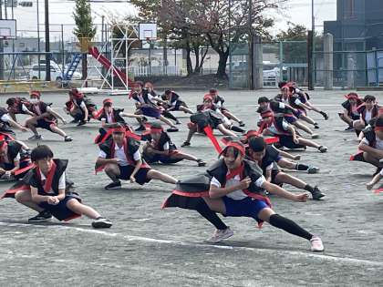 6年生の学年体育、ソーラン節の演技練習のようすです!