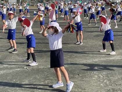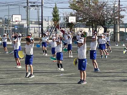 11月7日(火) アイドル〜みんなでピース!〜 公開日 2023/11/07 更新日 2023/11/07 2年 2年生の学年体育のようすです。はずむ笑顔で一生懸命アイドルの曲を演技してくれていました。最後に「明日もがんばるぞ!」「オー!」とみんなでかけ声をかけて最後の練習をしめくくりました。2年生のかわいらしい表現を楽しみにしてくださいね!