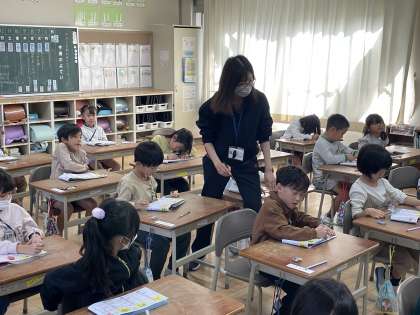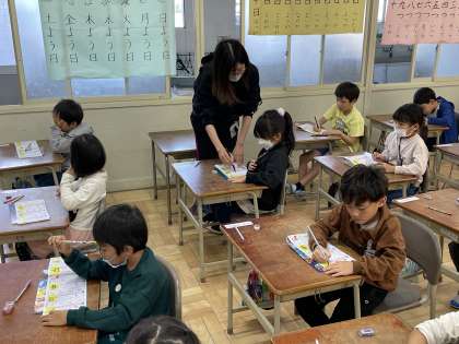 1年生の国語の授業のようすです。「中・町・入」の3つの漢字の読みや形の特徴などを学び、ていねいに練習していました。しっかりと覚えることができましたね。
