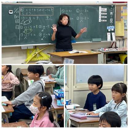 1年1組の算数の授業のようすです。「くりさがりのけいさんをしよう」というめあてで学習を進めていました。「13−5」の計算はどのように考えるのか説明するのに、自信を深めることができましたね。