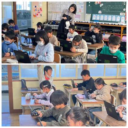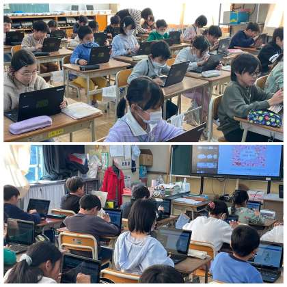 12月5日(火) 4年 クリスマスカード 公開日 2023/12/05 更新日 2023/12/05 4年 4年生の学級の時間のようすです。クロムブックを使ってクリスマスカードづくりに挑戦しました。かわいらしいイラストをつけて、素敵なクリスマスカードができそうですね。