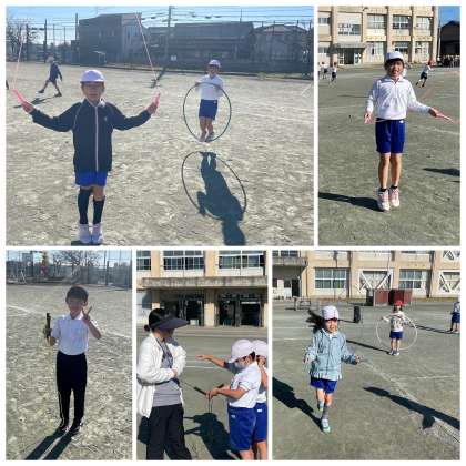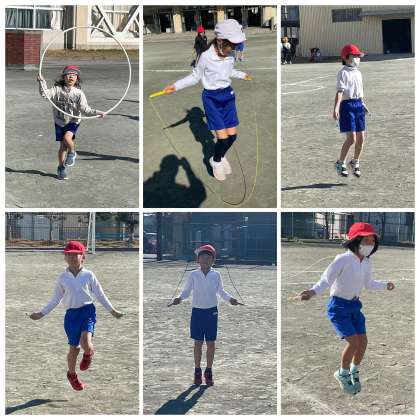 2年2組の体育の授業のようすです。なわとびに挑戦していました。「このとび方ができるようになったよ」とうれしそうに教えてくれて跳んで見せてくれました。たくさんチャレンジして自信を深めていこうね!