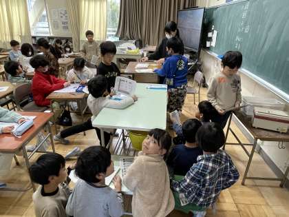 2年2組の算数の授業のようすです。九九をすらすらと暗唱できるように、くりかえし練習して確認していました。家でもたくさん練習して、自信を深めていこうね。