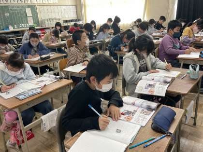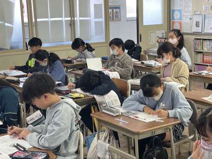 5年2組の社会の授業のようすです。「ものづくり大田区の誇る技術はどのようなものだろう」というテーマで学習を進め、世界でここにしかないオンリーワンの技術の内容について理解を深めていきました。