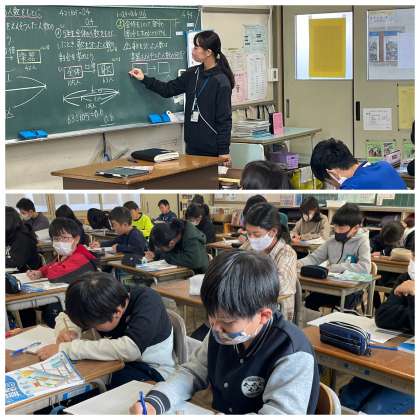 5年3組の算数の授業のようすです。割合についての問題をときながら「全体を1として部分の割合を求めることができる」ということをまとめていきました。