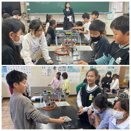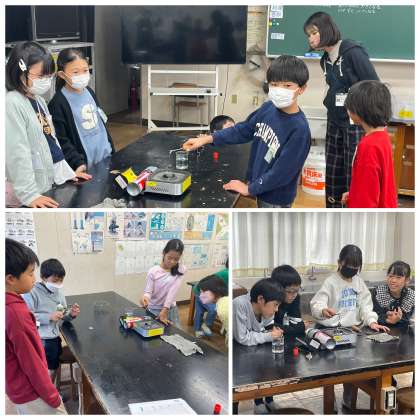 12月7日(木) 4-3 金ぞくの温度の変化 公開日 2023/12/07 更新日 2023/12/07 4年 4年3組の理科の授業のようすです。「金ぞくの温度の変化と体積の変化を調べよう」というめあてで実験をしていました。予想通りの結果になったかな?