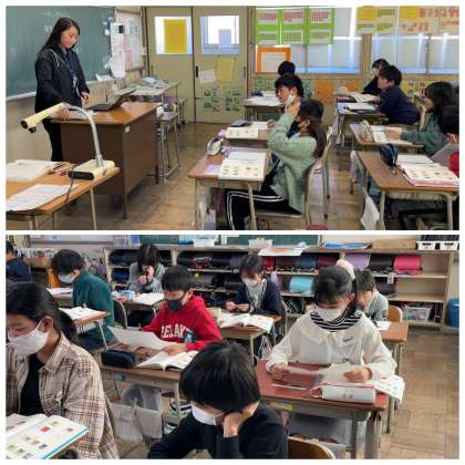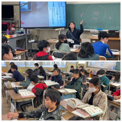 5年3組の国語の授業のようすです。「『たかしさん』のどのような行動や考えが『アンパンマン』のたん生につながったのかを考えよう」というめあてで学習を進めていました。