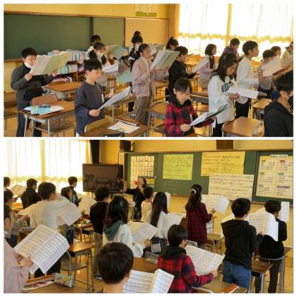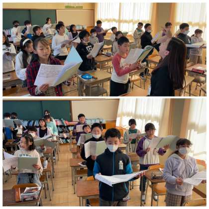 校長室にすごく響きのある歌声が聞こえてきました。南舎3階の音楽室をのぞいてみると5年生が音楽の授業をしていました。学習発表会で歌うことになっている「風が吹いている」の曲を体全体を使って歌っていました。みんなで心を合わせて表現したいという気持ちが伝わってきましたよ。学習発表会が楽しみです!