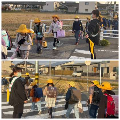 12月11日(月) 見守りありがとうございます! 公開日 2023/12/11 更新日 2023/12/11 PTA 12月らしくないのですが、とてもありがたいあたたかい朝になりました。校区の交差点では、PTA旗ボランティアさんや地域見守り隊のみなさんが子どもたちにやさしく声をかけていただきながら、安全な横断をサポートしてくださっていました。ありがとうございました。