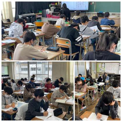 12月11日(月) 6-2 卒業文集をつくろう! 公開日 2023/12/11 更新日 2023/12/11 6年 6年生の国語の授業のようすです。「書き出しの2行を工夫して、卒業文集を書こう」というめあてで学習を進めていました。がんばってきたことや将来の夢など、自分の思いのこもった作文になるようにがんばっていきましょう!6年生の卒業文集を楽しみにしています。