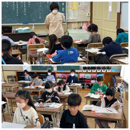 3年4組の国語の授業のようすです。「たから島のぼうけん」をテーマに「組み立てにそって物語を書こう」というめあてで学習を進めていました。登場人物が校長先生や担任の先生で計画している人もいると聞きましたよ!どんな物語になるか楽しみです。