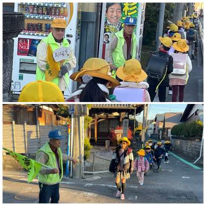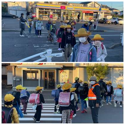 昨日よりも少しひんやりとした朝になりました。今日も早朝より、PTA旗ボランティアさんや地域見守り隊のみなさんには、子どもたちのやさしく声をかけていただきながら安全な横断をサポートしていただきました。おかげで今日も元気に一日をスタートすることができました。ありがとうございました。