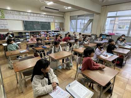 12月13日(水) 1-4今日は楽しい読み聞かせの日 公開日 2023/12/13 更新日 2023/12/13 1年 今日は子どもたちが楽しみにしている12月の読み聞かせボランティアデーでした。朝の時間を使って、担任の先生がとっておきの本を紹介してくださいました。写真は1年4組の活動のようすです。どんな内容の本だったか、ぜひご家庭でも話題にしてみてくださいね。