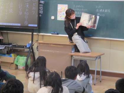 今日は子どもたちが楽しみにしている12月の読み聞かせボランティアデーでした。朝の時間を使って、読み聞かせボランティアさんがとっておきの本を紹介してくださいました。写真は4年2組の活動のようすです。どんな内容の本だったか、ぜひご家庭でも話題にしてみてくださいね。