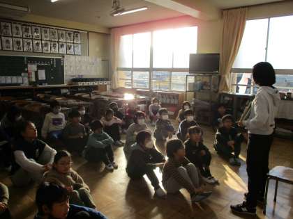 今日は子どもたちが楽しみにしている12月の読み聞かせボランティアデーでした。朝の時間を使って、読み聞かせボランティアさんがとっておきの本を紹介してくださいました。写真は4年3組の活動のようすです。どんな内容の本だったか、ぜひご家庭でも話題にしてみてくださいね。