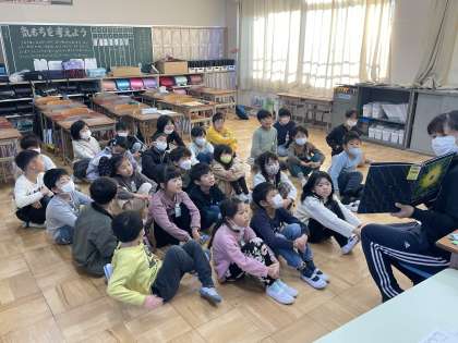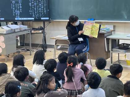 2年3組の朝の時間のようすです。担任の先生が読み聞かせをしてくれていました。夢中になって本を見て耳を傾ける姿がとてもかわいらしかったです。みんな本が大好きですね。