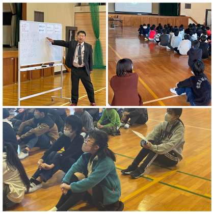 12月13日(水) ひまわり6年 薬物乱用防止教室 公開日 2023/12/13 更新日 2023/12/13 ひまわり組 ひまわり組の6年生が薬物乱用防止教室に参加している様子です。しっかりとお話を聞いたり、DVDを見たり、写真や模型を観察して、薬物を絶対に乱用しないという気持ちを強くすることができましたね。