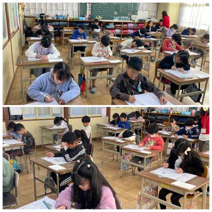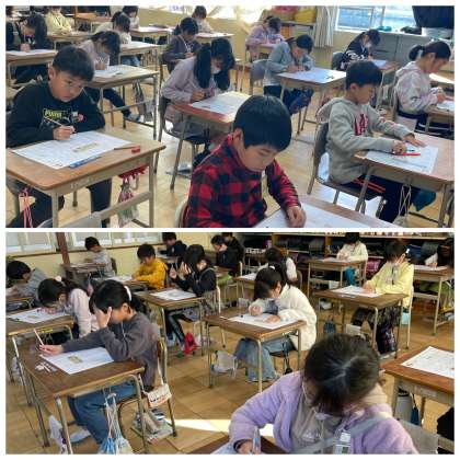 3年1組と2組の国語の授業のようすです。三年とうげで学んだことを確認するプリントに挑戦していました。漢字やことば、読み取りなど、学習してきたことをしっかりと書き記すことができましたね。