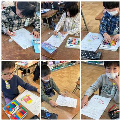 12月14日(木) 2年 わっかでへんしん! 公開日 2023/12/14 更新日 2023/12/14 2年 2年生の図工の授業のようすです。「ぼうしのデザインをしよう」というテーマで学習を進めていました。すてきな帽子ができそうで楽しみです!