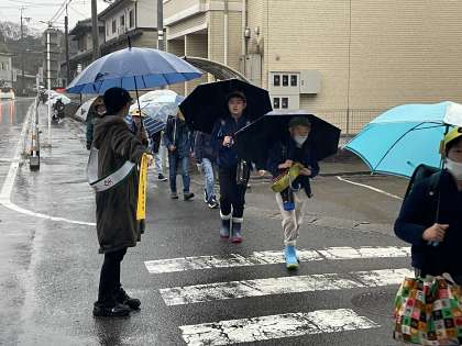 12月15日(金) 見守りありがとうございます! 公開日 2023/12/15 更新日 2023/12/15 PTA 久しぶりのまとまった雨になりました。校区の交差点では、PTA旗ボランティアさんや地域見守り隊の方が、雨にぬれながら子どもたちの安全サポートをしていただきました。おかげで無事、登校を完了することができました。感謝感謝です。ありがとうございました!