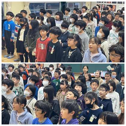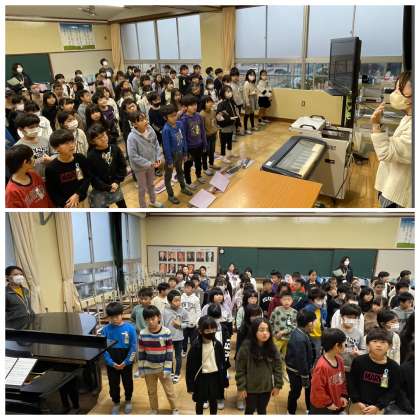 伸びのあるすばらしい声が響いて、歌っているみんなの顔は気持ちよさそうでしたね。学年の先生たちにも笑顔が広がっていました。体育館でもすてきな歌声を響かせられるように、これから頑張っていきましょうね。