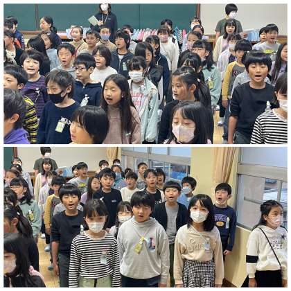 3年生の学年ハーモニータイムのようすスナップです。すばらしい歌声に感心しましたよ!学年の歌声を結集して、学習発表会で聞いてくれる人に感動をプレゼントしよう!